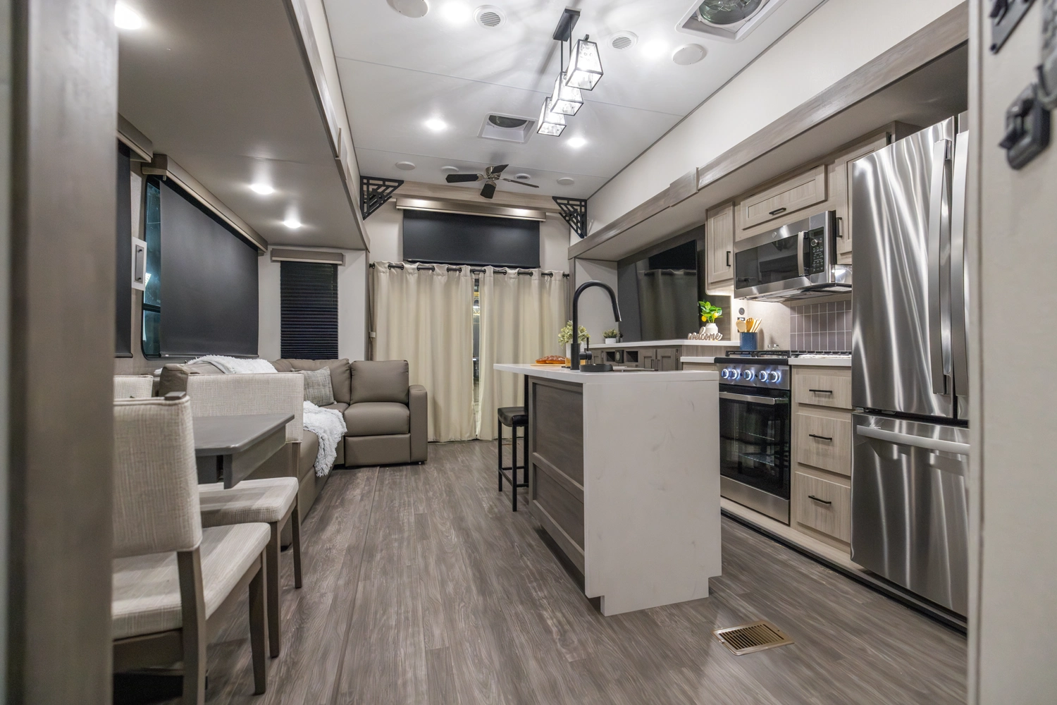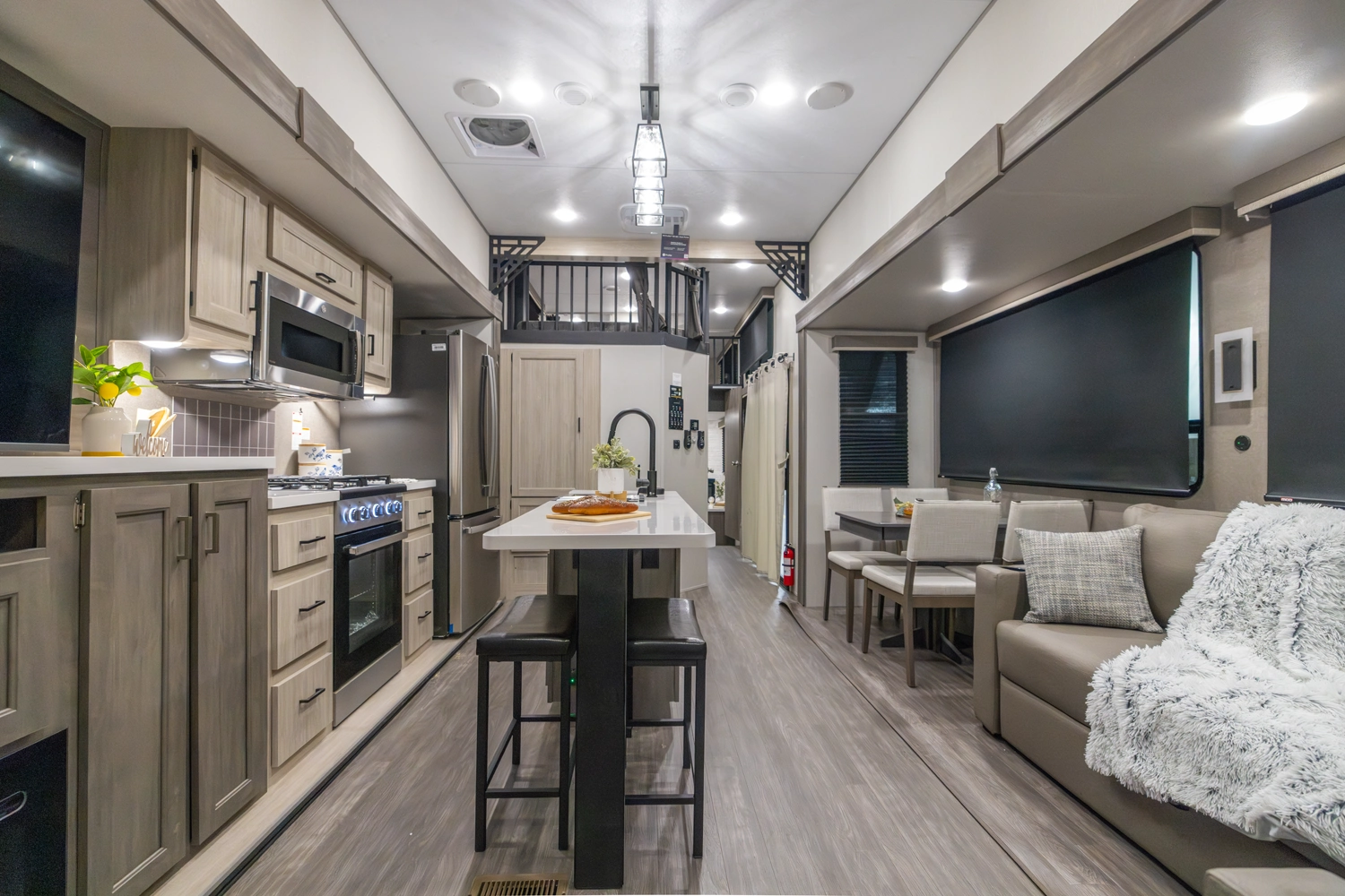 A 43' layout that maximizes comfort and flexibility for larger crews, offering ample sleeping, kitchen, and living space. Perfect for long weekends, lake stays, or setting up a spacious home base for relaxing, memorable getaways.