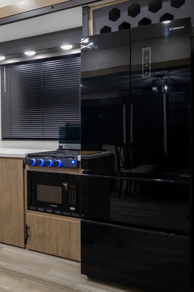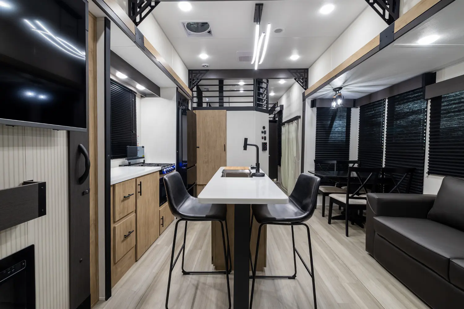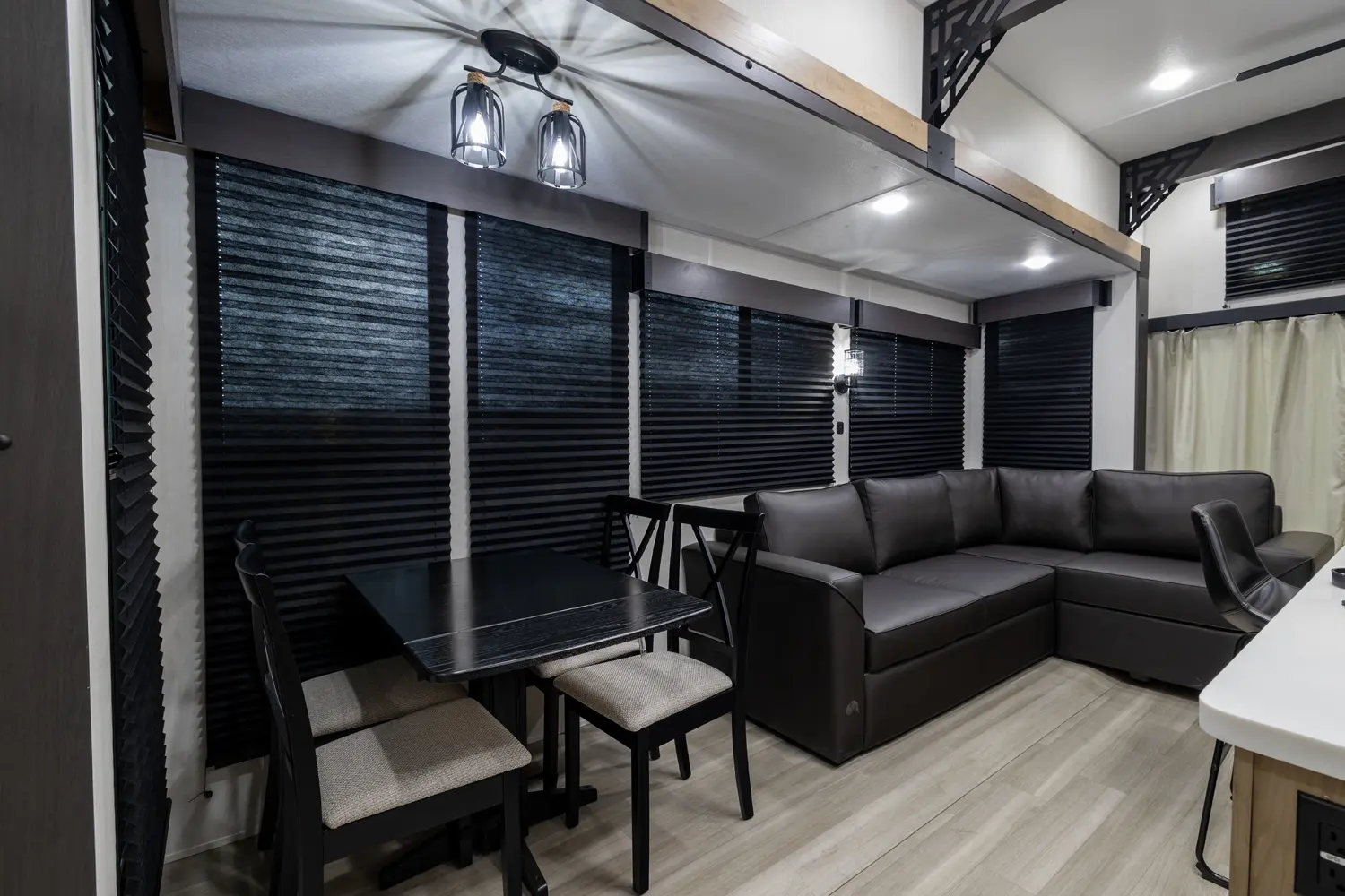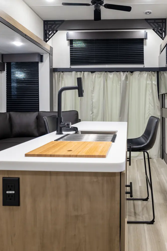 The first destination trailer in the Campsite Reserve brand is finally here! This unique model was designed with a sliding glass door and L-shaped sectional that make the living room feel truly expansive. This model is also highlighted by 2 queen beds and a king size bed in the primary suite.
