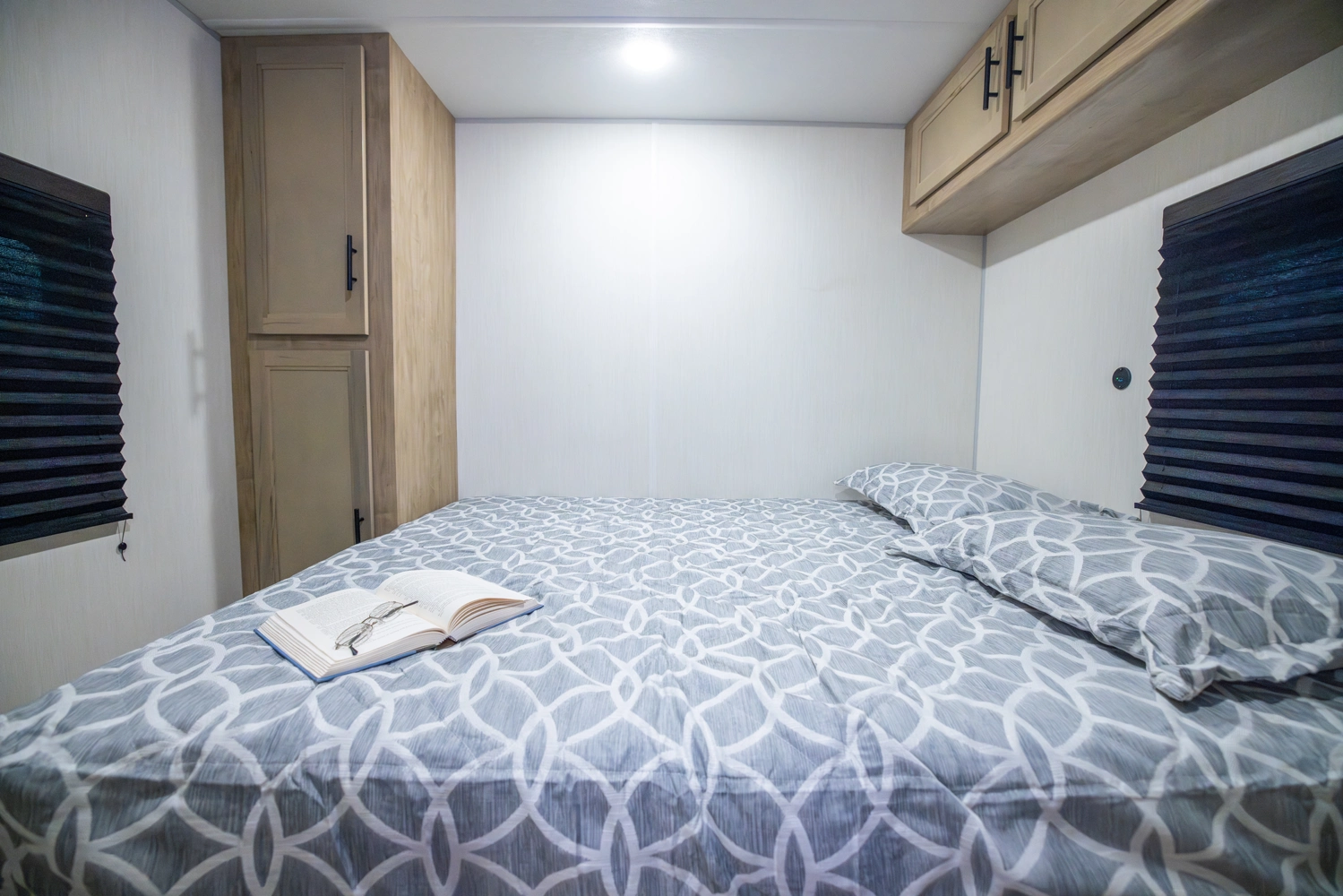 This 29 foot travel trailer has it all. The front bedroom features a large queen bed with entry directly into the bathroom as well as a rear queen bedroom for adults or older children. This unit also features a double entry and access to the bath from the outdoors. An oversized pantry, abundant cabinets and 2 huge pullout drawers under the dinette are available for storage of all camping needs.