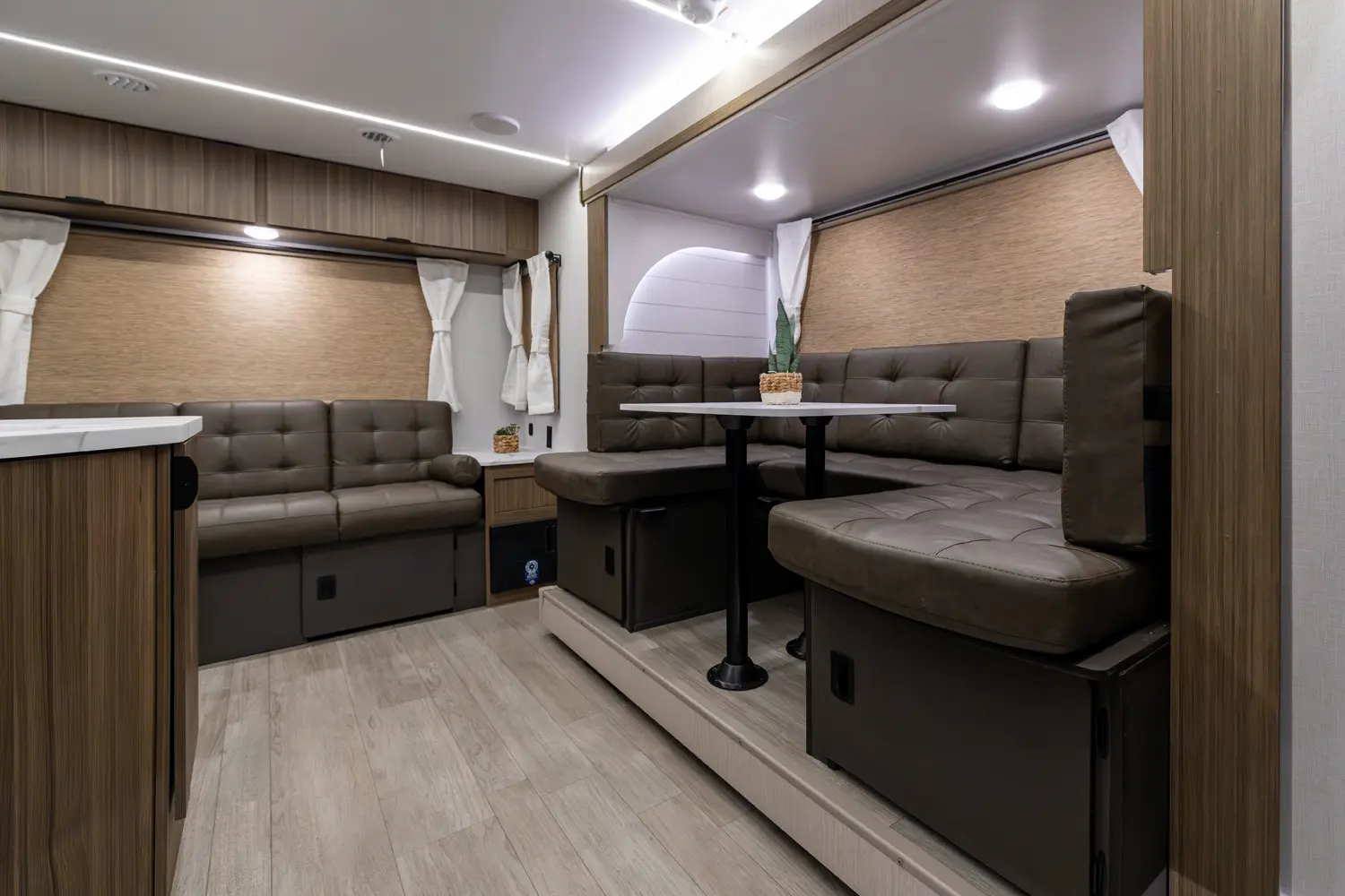 The 24RLXL is an extra-light travel trailer that comes in at 28' 11" and just over 5,000 lbs. The master bedroom features a ton of storage, including dedicated C-pap cubbies! The bathroom provides loads of storage as well, plus a walk-in shower. The kitchen is well-appointed with modern appliances and an oversized 11 CU. FT. refrigerator, fireplace, and U-dinette.