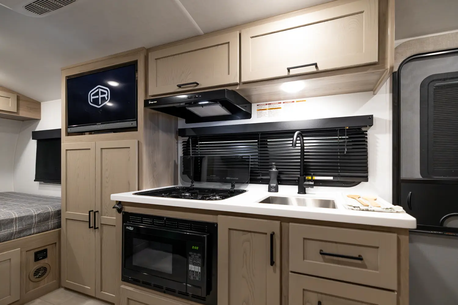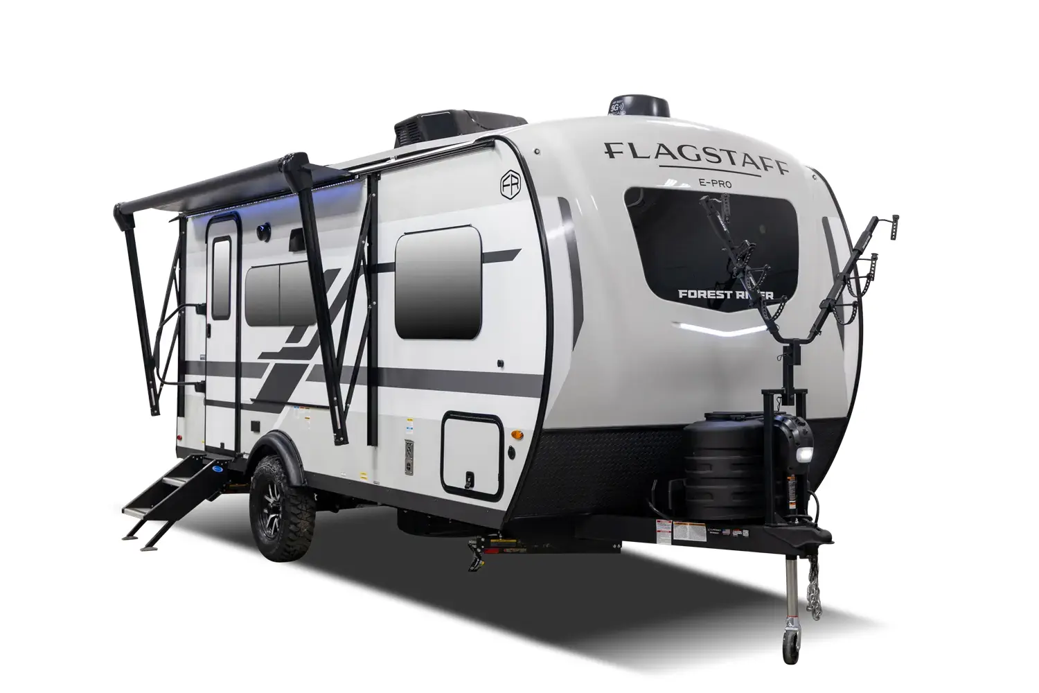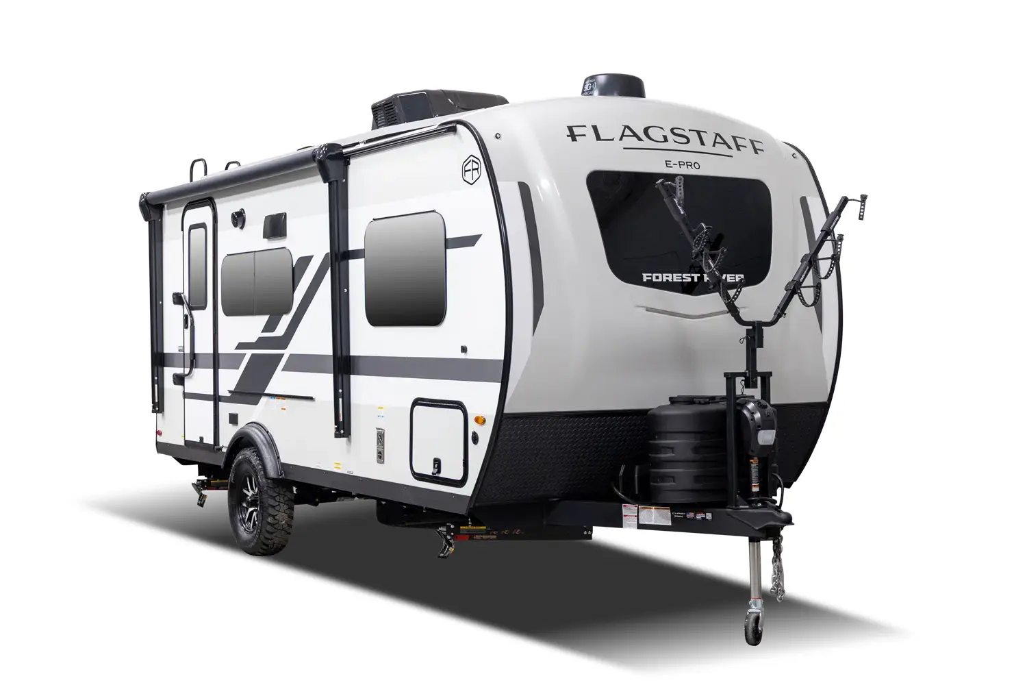 The Flagstaff E-Pro E19FBS is a rear entry couples coach with a small slide that offers so much great space. The large bathroom is one of the best features of this small couples coach. The 72” sofa also makes for a great bed for guests, children or pets. At 20’ and light weight, you will not be able to get more walk around footage than this great couples coach.