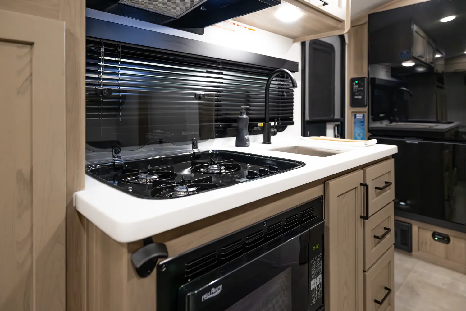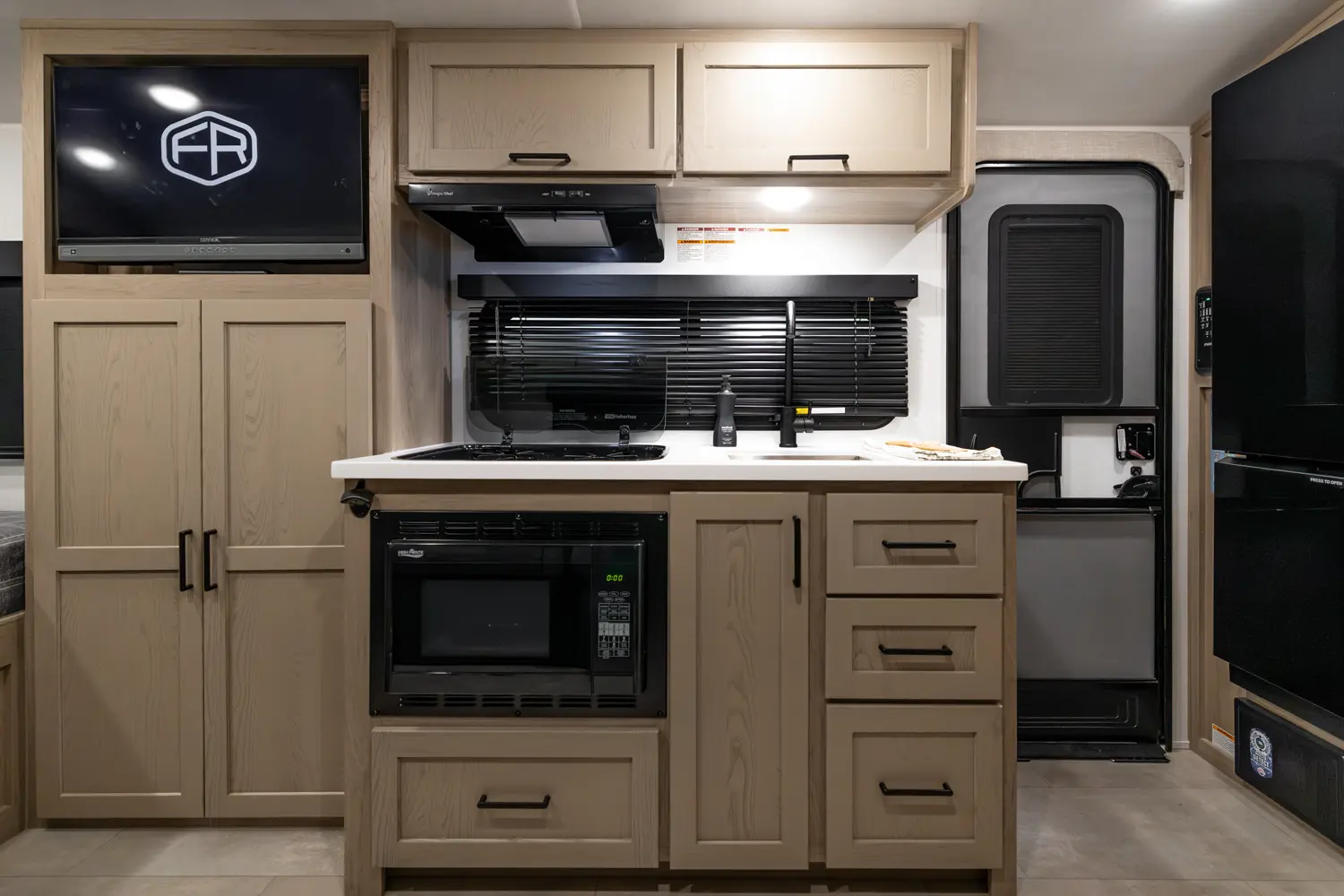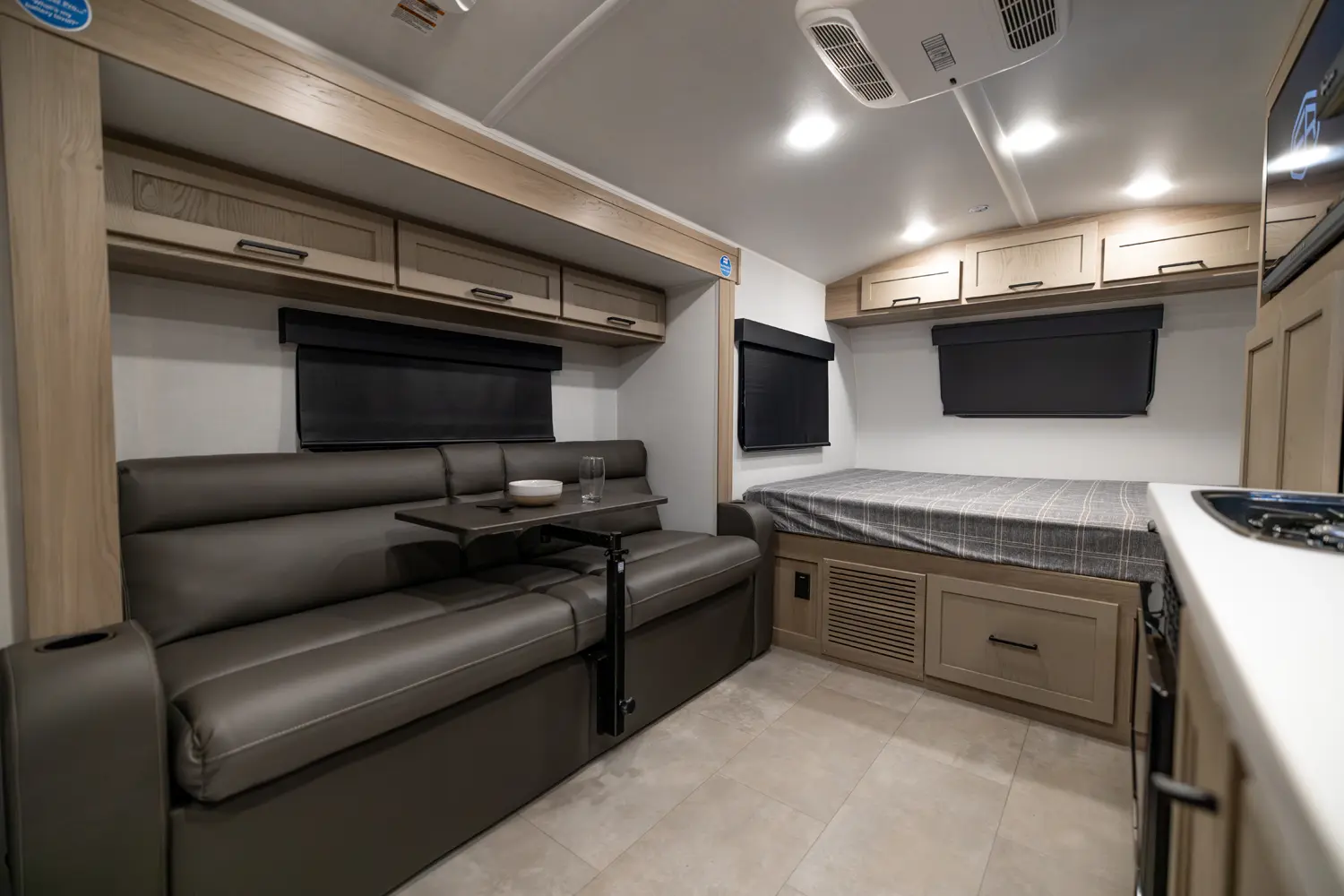The Flagstaff E-Pro E19FBS is a rear entry couples coach with a small slide that offers so much great space. The large bathroom is one of the best features of this small couples coach. The 72” sofa also makes for a great bed for guests, children or pets. At 20’ and light weight, you will not be able to get more walk around footage than this great couples coach.