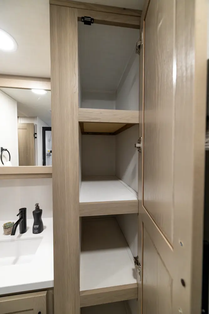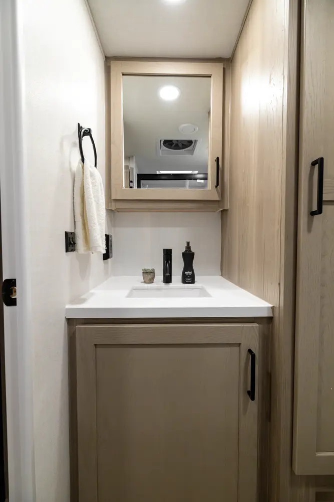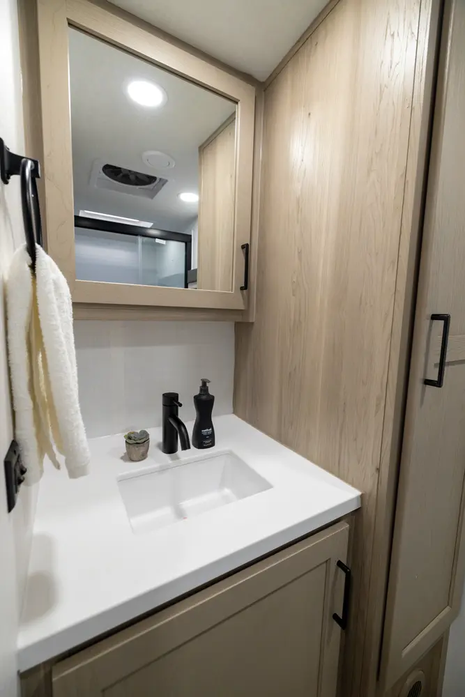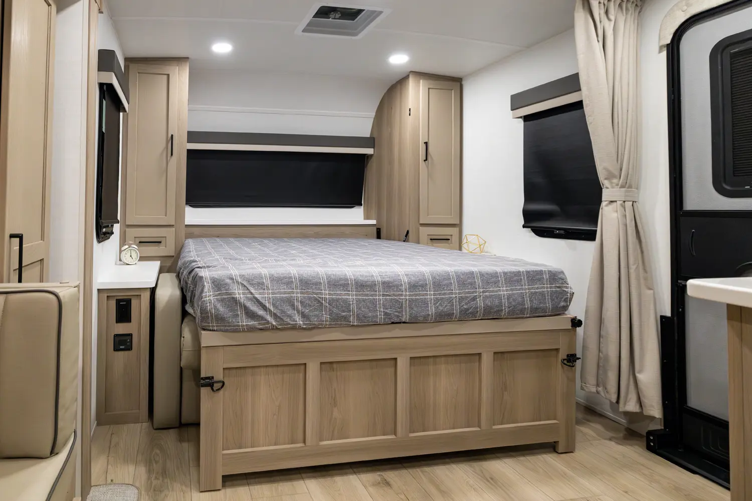 The 22SQS delivers a smart, comfortable layout with a front Murphy bed that maximizes living space by day and provides a restful sleep at night. The U-shaped dinette offers plenty of room for meals, games, or extra sleeping space when needed. A large rear bathroom with a rectangular shower adds everyday comfort and convenience making this floor plan a great choice for couples or small families who want big features in a compact trailer.