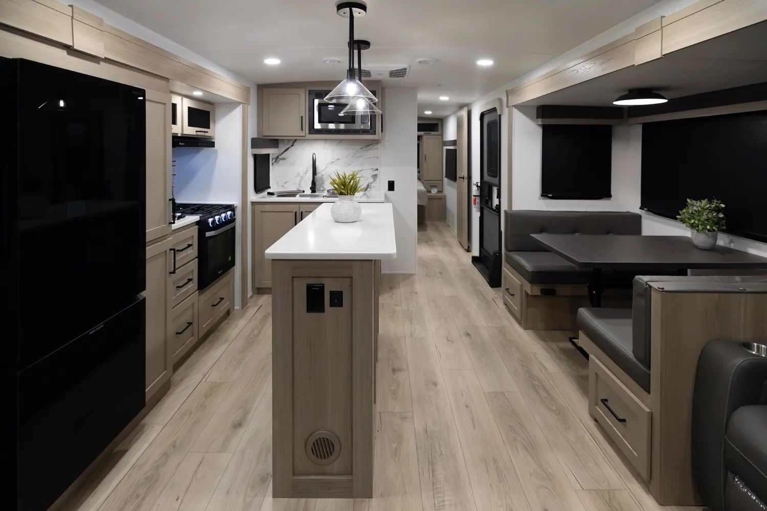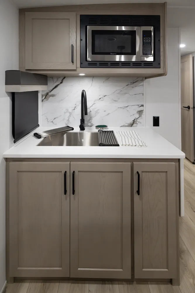 The Flagstaff 29RLKS Super Lite delivers a standout layout with a front bedroom featuring a true queen bed and abundant comfort. The large bathroom boasts a rectangular shower and linen storage for convenience on every trip. The massive living area shines with a TV, fireplace, 78" hide a bed, 68" theater seating, and a 44" dinette, creating a perfect space for relaxing and entertaining. The kitchen island adds extra prep space and storage, rounding out this Super Lite’s thoughtful design.