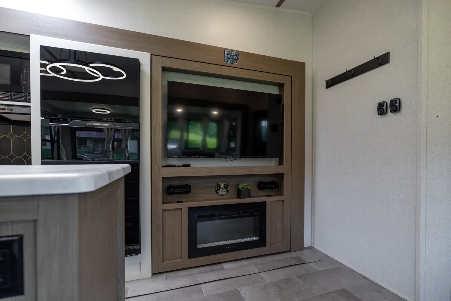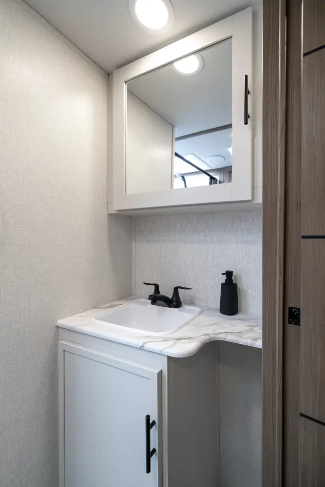 • 110 Outlet & 12V Charging Ports Beside Bed