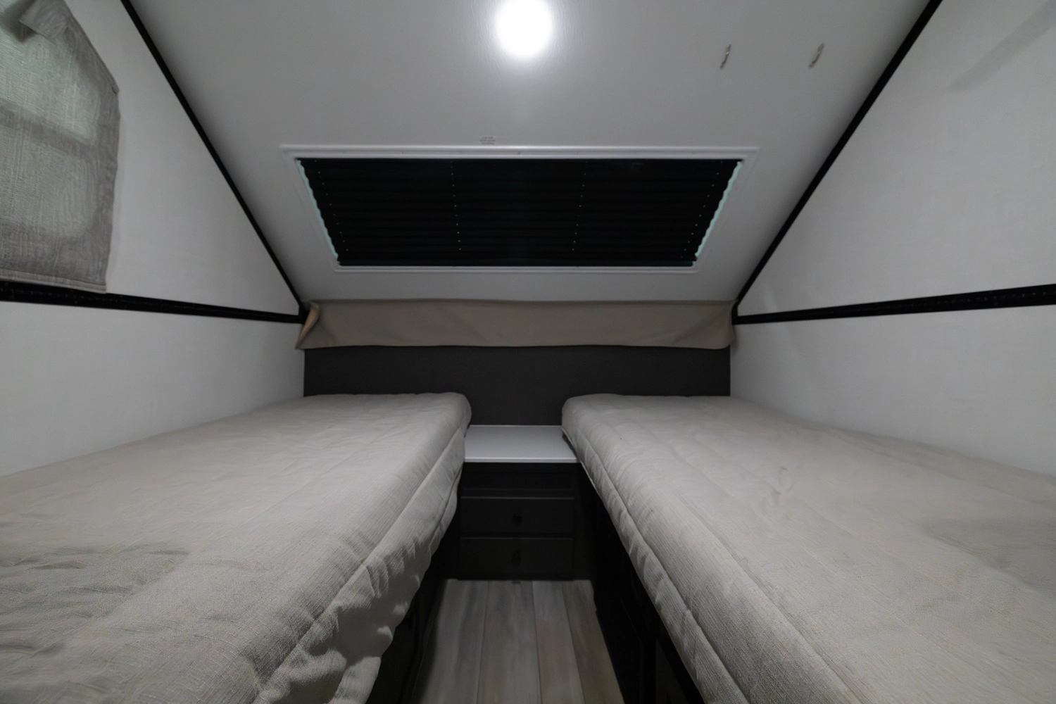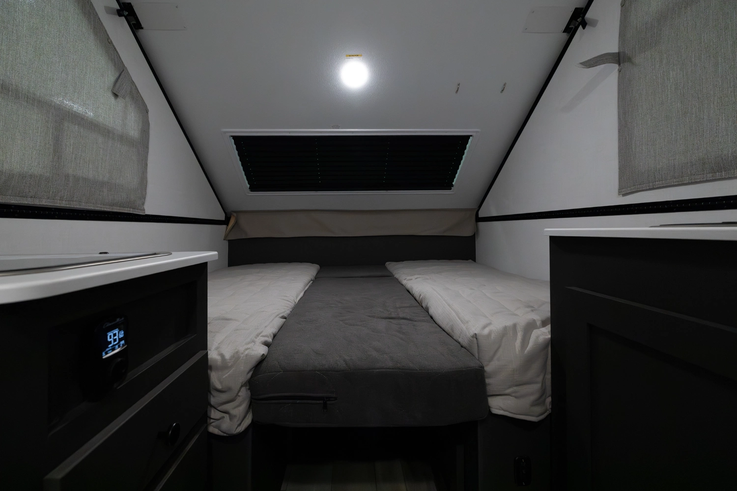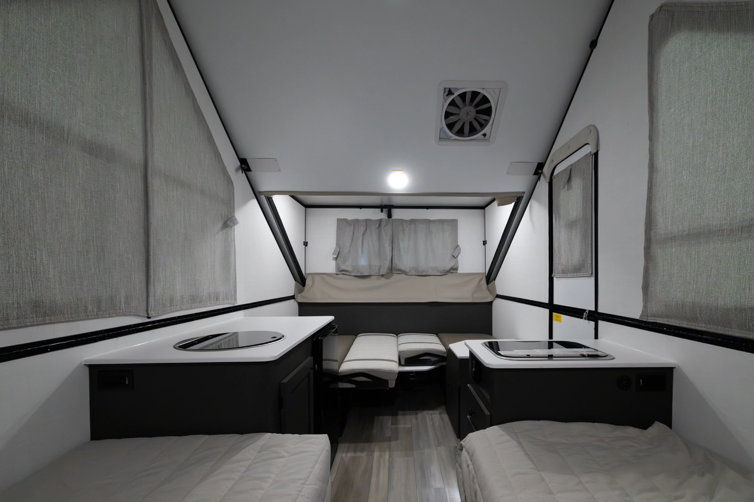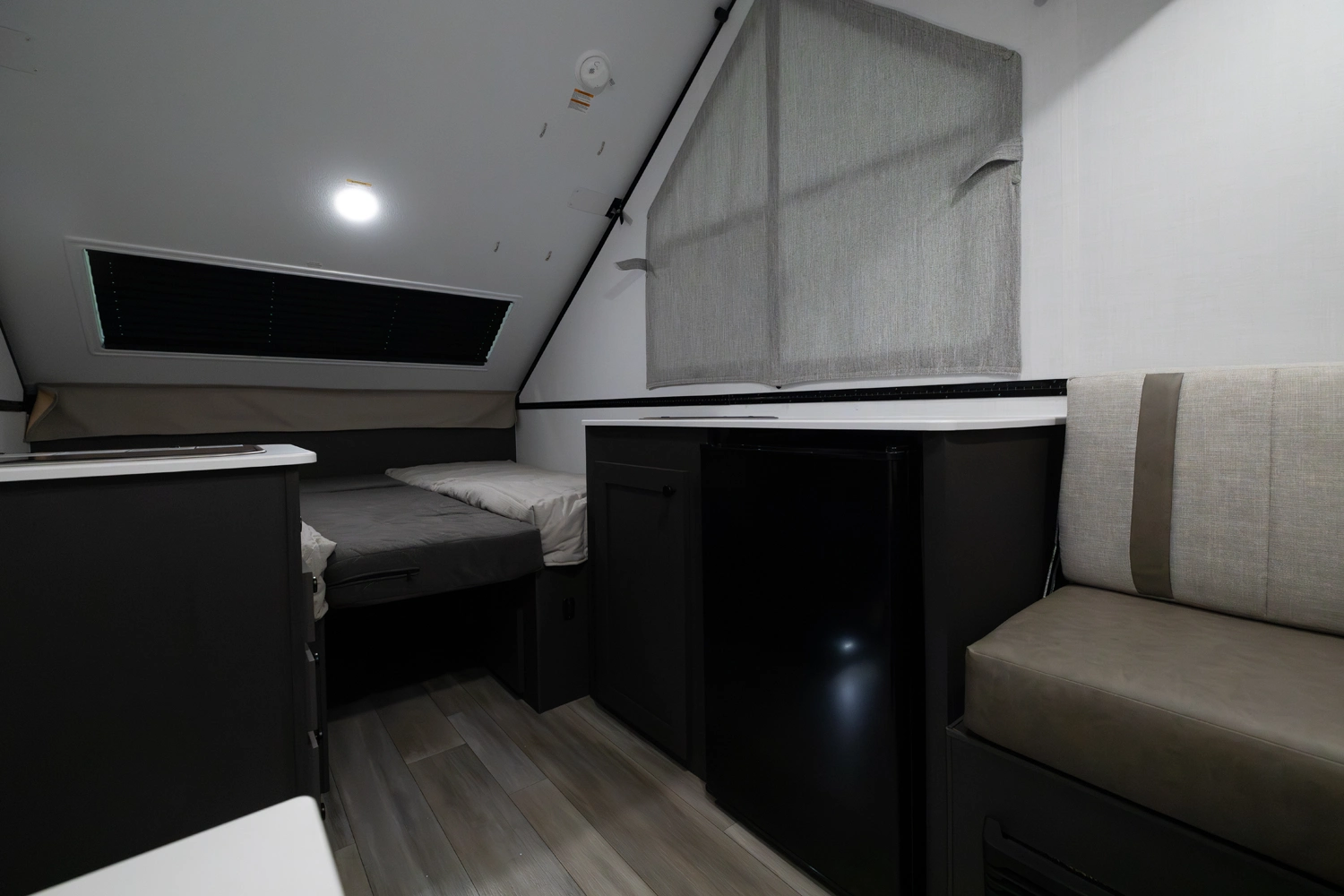 EMBRACING THE PINNACLE OF VERSATILITY. The Rockwood Hardside Series emerges as a harmonious feeling of a travel trailer's exterior and the effortless towing convenience of a tent camper. Within this remarkable synthesis, every model features both an air conditioner and a furnace, ensuring your inner sanctum remains cozy, regardless of external conditions. The extraordinary speed and simplicity of setup ensures that mere moments after arriving at your chosen campsite, you'll already be immersed in the joys of your camping experience.