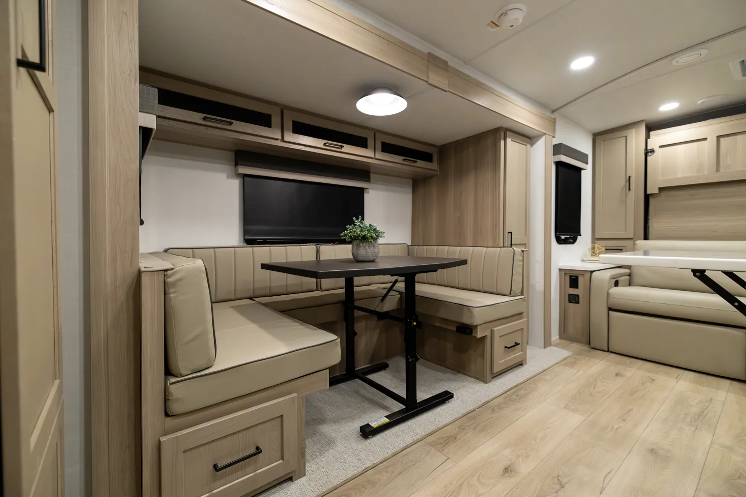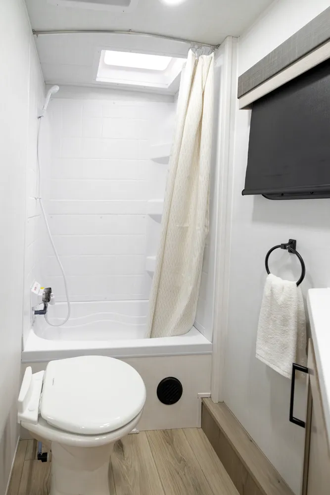 This is the perfect family trailer towing under 26' feet. The double 48" X 72" bunkhouse is awesome for sleeping the kids and even fits adults comfortably. The bottom bunk folds up for even more storage and toys will fit nicely underneath! The big 60" X 74" murphy bed folds up into a sofa for daily use. The giant 18' awning goes almost all the way across your unit while covering the outside kitchen.