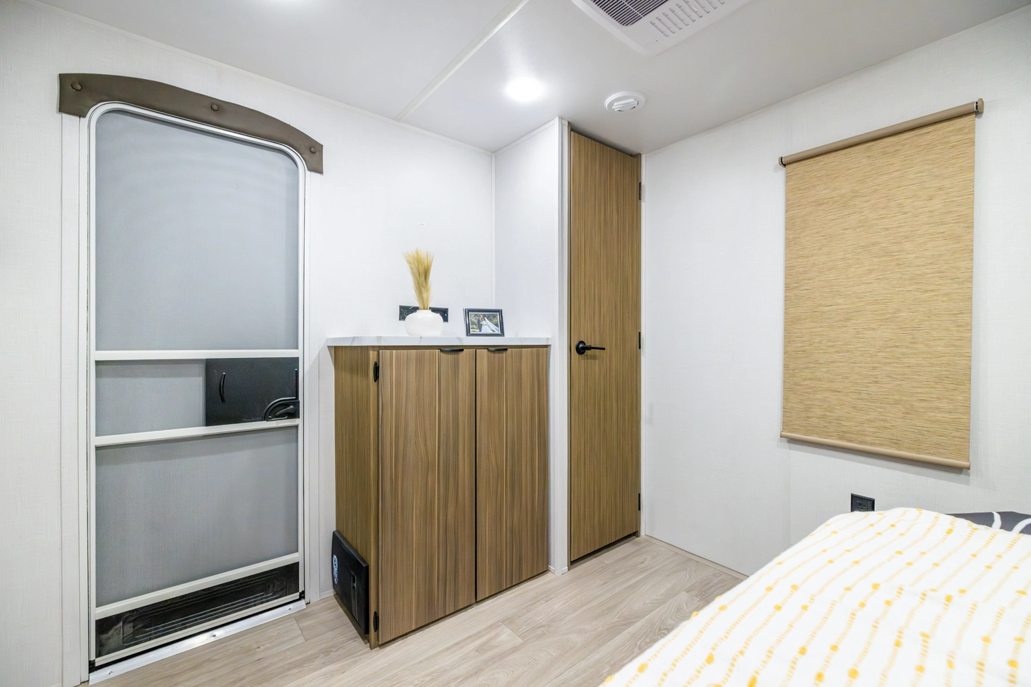 The 36VBDS is a unique, versatile bunkhouse that offers ample sleeping options so you can bring everyone camping! The front bedroom offers both the Versa-Queen and Versa-bunks, while the rear bedroom provides a queen bed, dresser, and closet. The living area features the fantastic Versa-Lounge with panoramic windows for great campsite views. Do not forget about the Stow N Go Storage conveniently below the Versa-Lounge.