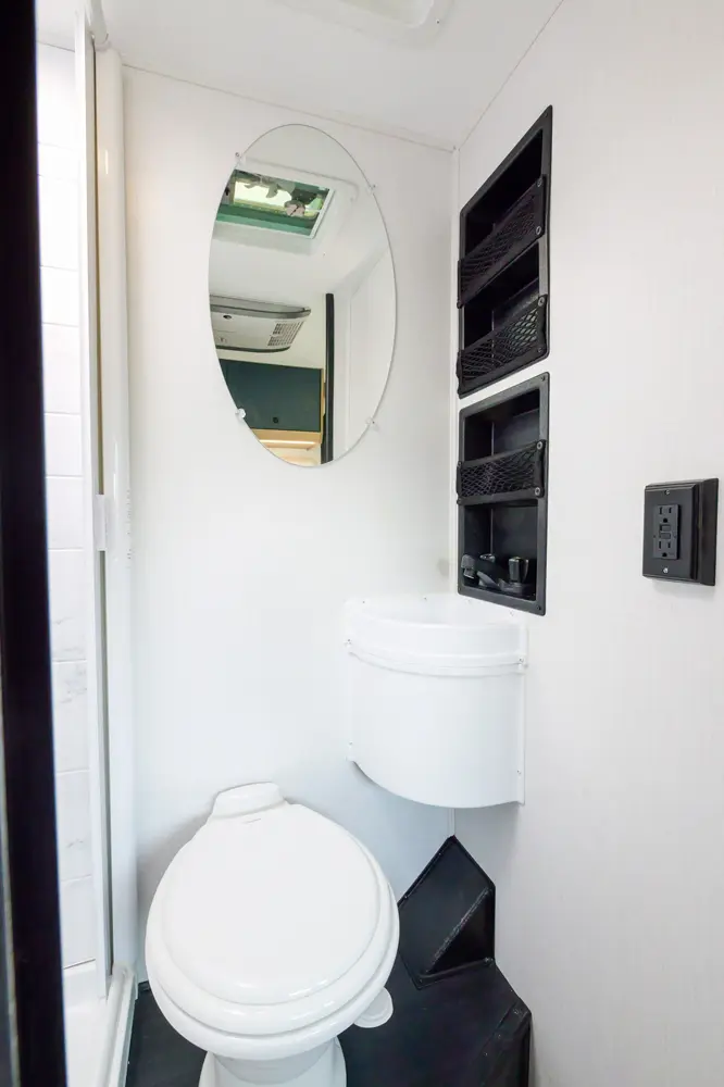 • 3-piece dry bath — separate shower, porcelain toilet, and vanity sink