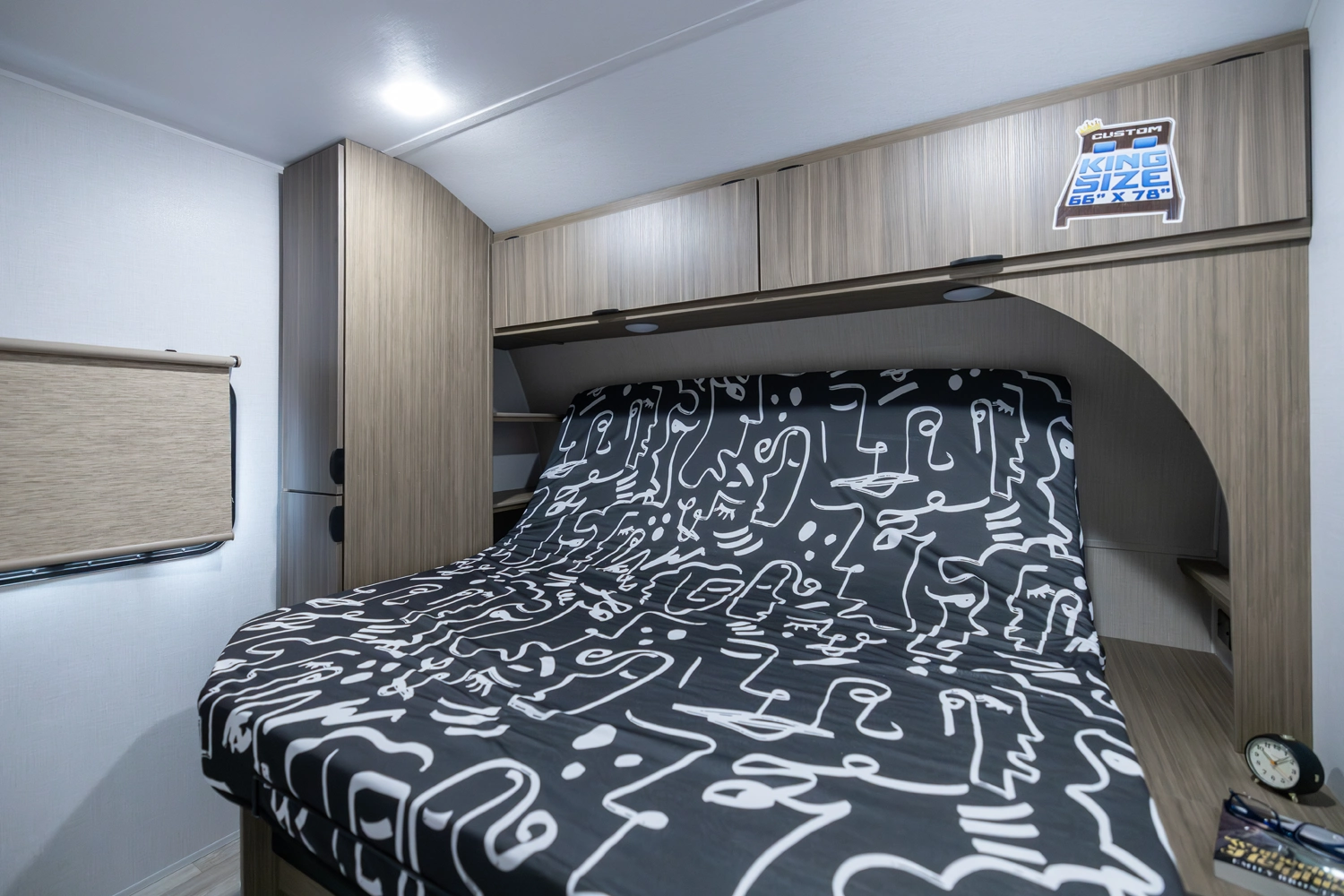 The 27RK stands out with its spacious kitchen and panoramic campsite windows. You will love the Versa-Lounge, which can reconfigure and customize according to your needs—and conveniently below is the Stow N Go Storage! This model also provides a fireplace (heater) and 11 CU. FT. refrigerator making you feel right at home.